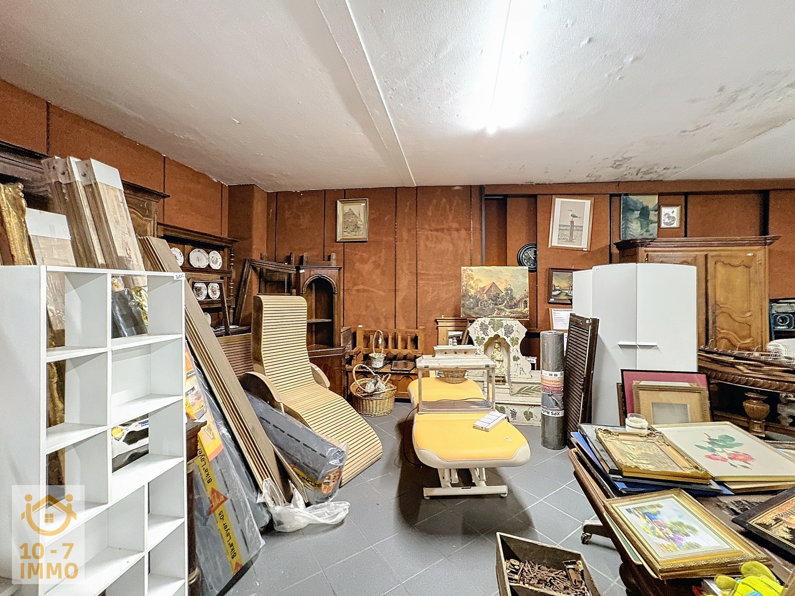 Le rez-de-chaussée, actuellement exploité en tant que local d’antiquaire, offre de nombreuses possibilités d’aménagement. Il dispose également d’une cave de plus de 100 m², idéale pour du stockage ou des aménagements complémentaires.